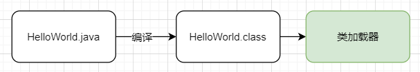 那我们的 JVM 是不认识文本文件的,所以它需要一个 编译 ,让其成为一个它会读二进制文件的 HelloWorld.class