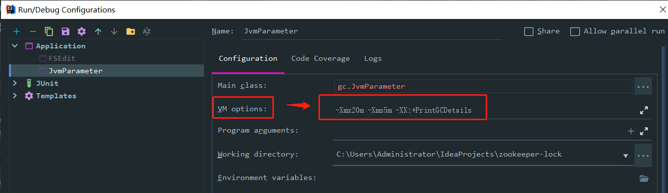 -Xmx20m -Xms5m -XX:+PrintGCDetails